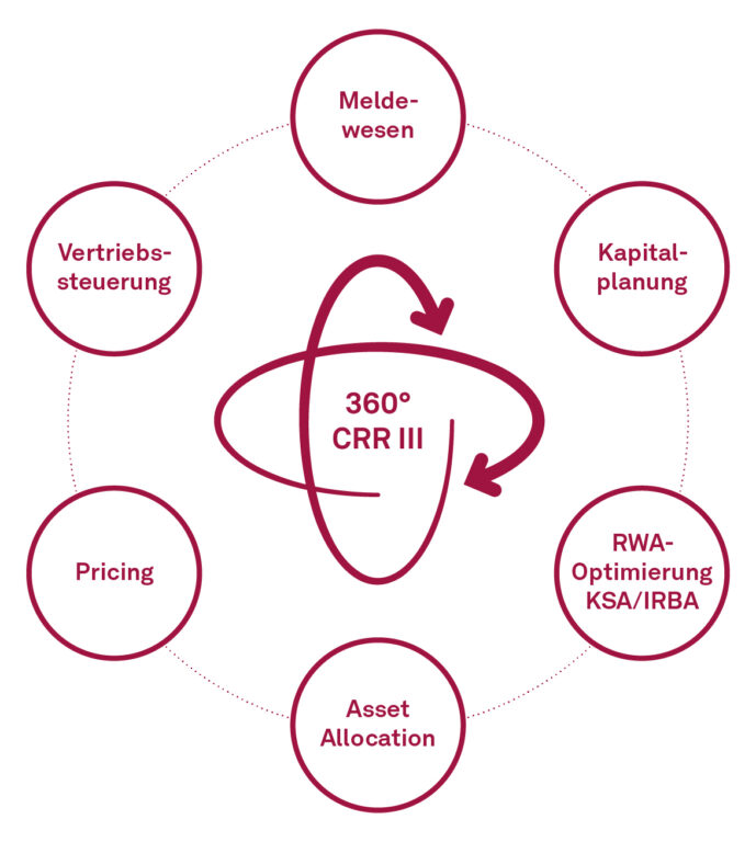 Die 2025 in Kraft tretende Überarbeitung der Capital Requirements Regulation (CRR III) wirkt sich auf alle Kreditinstitute aus. Mit unserem 360-Grad-Review beleuchten wir alle Auswirkungen dieser Reform: von der Kapitalplanung, die schon heute über den angekündigten Start der neuen CRR Anfang 2025 hinausreicht, über Asset Allocation, Pricing und Vertriebssteuerung bis hin zu Meldeanforderungen.